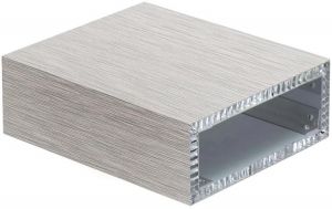 鋁蜂窩板的制造。其面板主要以優(yōu)良3003H24合金鋁板或5052AH14高錳合金鋁板為基材,面板厚度為0.8~1.5mm氟碳滾涂板或耐色光涂料,耐色光涂料在耐劃痕、耐酸雨腐蝕變色、自潔性方面優(yōu)于PVDF,底板厚度為0.6~1.0mm,總厚度